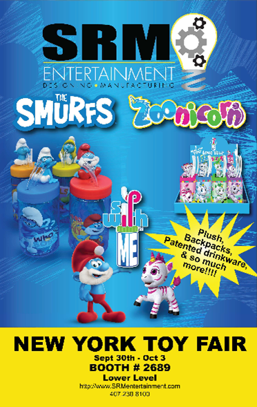 SRM Entertainment will introduce the featured Smurfs and Zoonicorn Sip with Me kids drinkware product line September 30 thru October 3, 2023 at the North American International Toy Fair in New York City (Booth #2689).